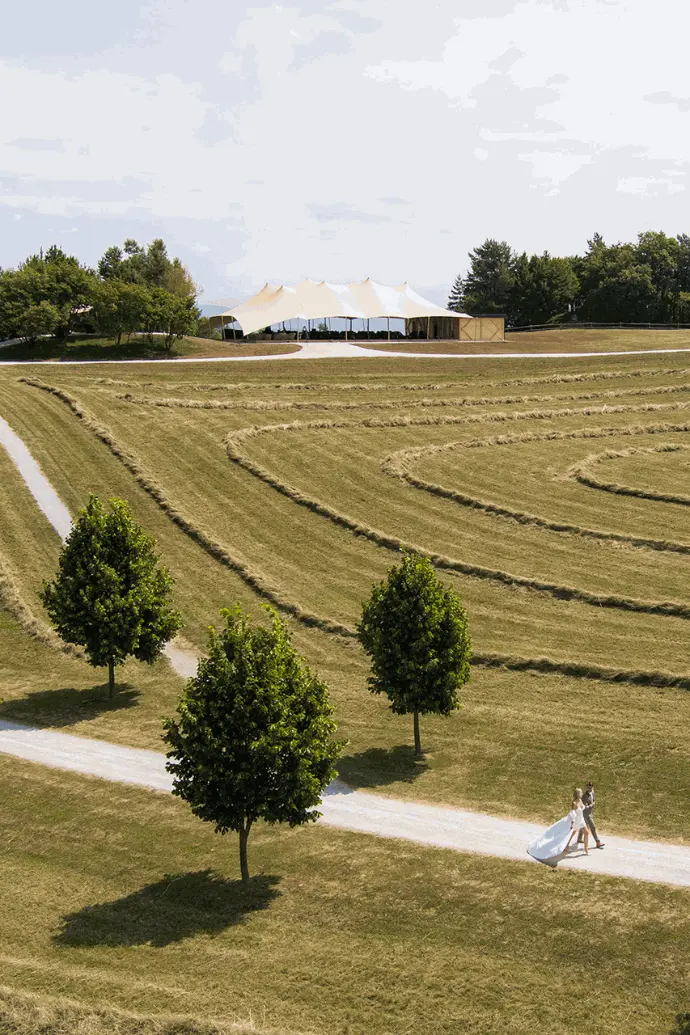 V naši ponudbi vam omogočamo najem čudovitega zunanjega prostora za izvedbo poročnega obreda in pogostitve. Lokacijo lahko popolnoma prilagodimo vašim željam – od postavitve sedišč, dekoracije, obrednih točk do posebnih simbolnih elementov, ki izražajo vajino ljubezensko zgodbo.